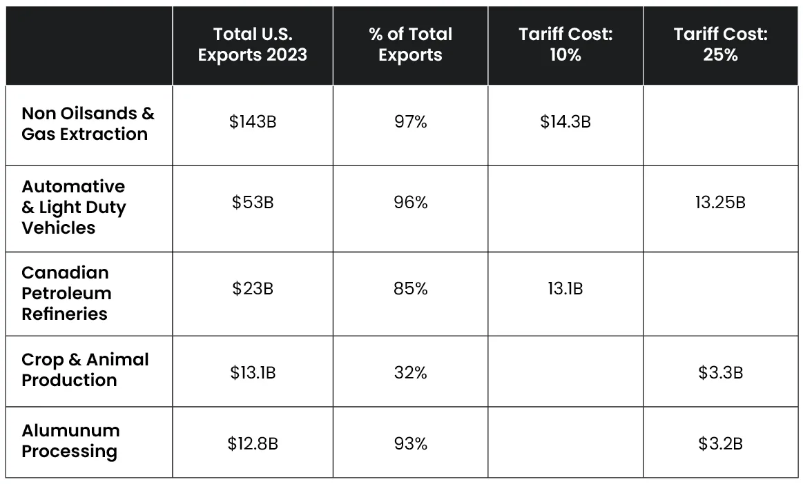 Industry-Specific Impact of U.S. Tariffs on Canadian Exports